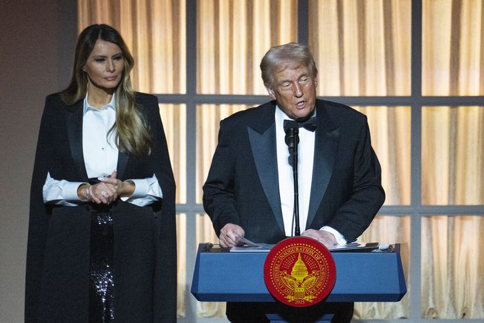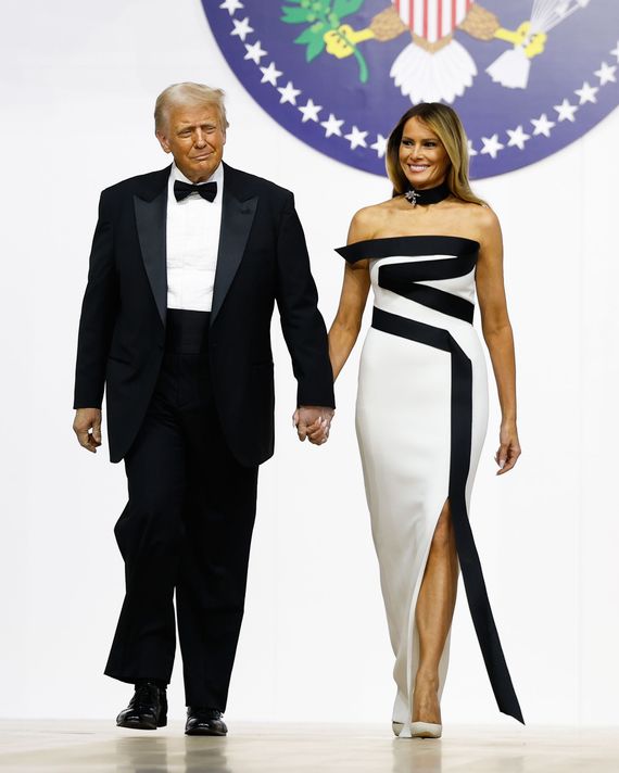 Melania is back in the White House with a new approach to her style: If the first administration was about tastefully fading into the background with Dior bar suits and Jackie Kennedy cosplay, this time, she’s aiming to serve some memorable, fashion-forward looks that won’t prompt anyone to think of past First Ladies — even if it means sticking out from the crowd or confounding the internet. On Sunday night at a pre-inauguration black-tie dinner, Ivanka wore an Oscar de la Renta gown covered with pearls and crystals and Lauren Sanchez showed up in a Dolce & Gabbana couture gown. Instead of following the most obvious dress-code conventions, Melania opted for a more casual sequined Carolina Herrera skirt and white button-down worn underneath a Saint Laurent cape coat. Once again, she proved she loves a theme, especially a literal one: cape coats. Earlier that day, she wore a similar one to a ceremony at the Arlington National Cemetery.