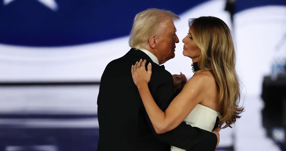 To celebrate Donald Trump’s official return to power, Melania attended a trio of inaugural balls alongside her husband. First, the couple hit up the Commander-in-Chief Ball, where they entered the room to a “thunderous” standing ovationfor New York Post. The First Lady ditched her Adam Lippes suit for a zigzagging Hervé Pierre gown complete with a choker and a brooch that looks like a bouquet.