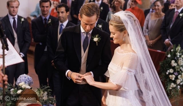 Princess Marie Caroline arrived on the arms of her parents, Prince Alois in a classic white Rolls-Royce car, to be discovered when descending on a finely detailed dress and a transparent veil decorated with lace.