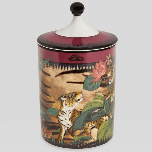 This is not your average candle, which makes it great for gifting. It’s adorned with a tiger-and-water-lily print, as well as a geometric border and the Etro logo.