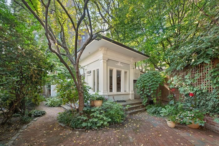 The guesthouse, accessible via Seventh Avenue, was a 1922 gas station that closed in the 1970s and became an auto-repair shop. In the 1980s, the owner of 66 Bedford Street went before the Landmarks Preservation Commission to get plans approved to turn the structure into a “neo-Italian Renaissance” guesthouse. Photo: Zoe Wetherall/Duplex Imaging NYC