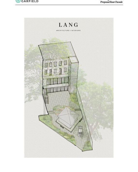 Lesser’s firm sketched out potential plans to show how taking out the extra staircase, kitchen, and central wall between the two homes would allow space for a gym, laundry room, study, media room, dining room, and foyer, plus four larger bedrooms. Those plans also suggest a buyer could add more glass to the rear wall to let in light and views of the gardens and drive. “It truly gives you a suburban feel back there,” he says.