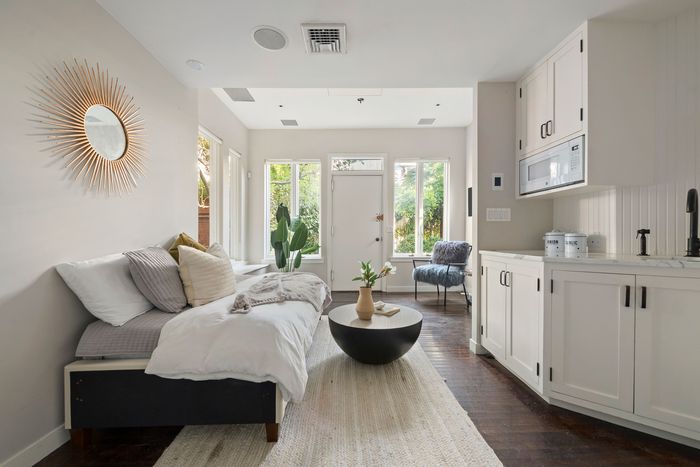 Inside the guest house is a kitchenette and a bath. The current owner has been using it as an office for staff. Photo: Zoe Wetherall/Duplex Imaging NYC