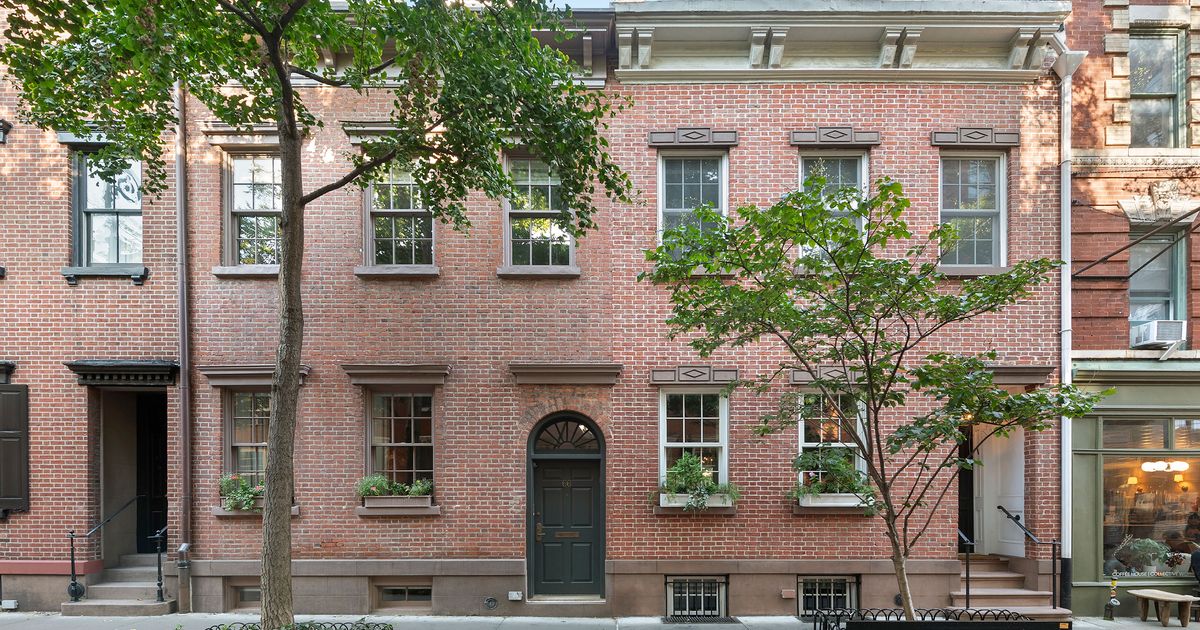 Two townhomes that face Bedford Street in prime Greenwich Village are on the market together and could be combined into a single, 37.5-foot-wide home. No. 66 is in the middle, and 64 is on the right. Photo: Zoe Wetherall/Duplex Imaging NYC