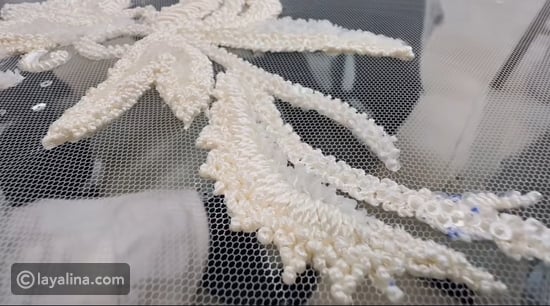 اخترت المستلونة حليم أن تُزّن الفسطان ببروش اوليد على شكل زهرة اللوتس, the famous الفرعوني الإبراوني إذي يستعدة النقاء والبائة المتجدنة.