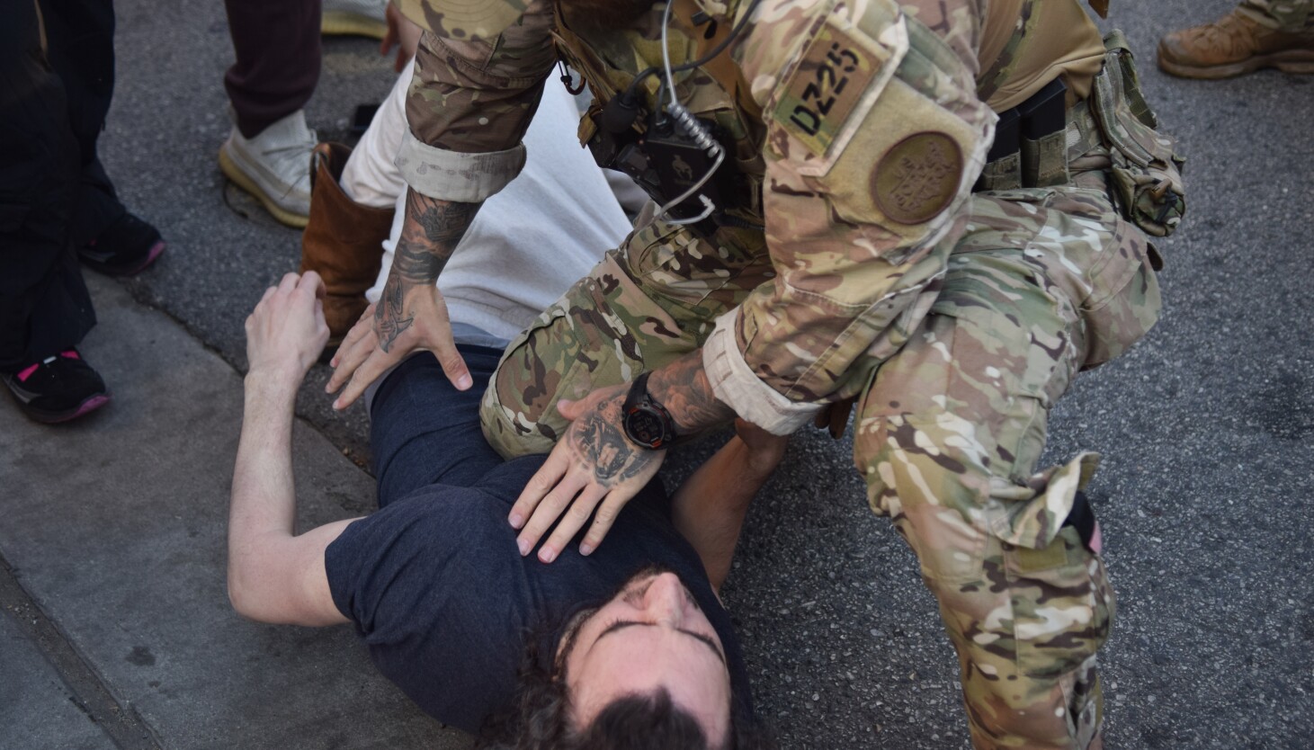 A reporter spotted one agent without a body camera. Another agent used a GoPro camera in addition to a body camera. Some agents had numbered identifiers on patches on their uniforms. Others had identifying numbers written on tape.