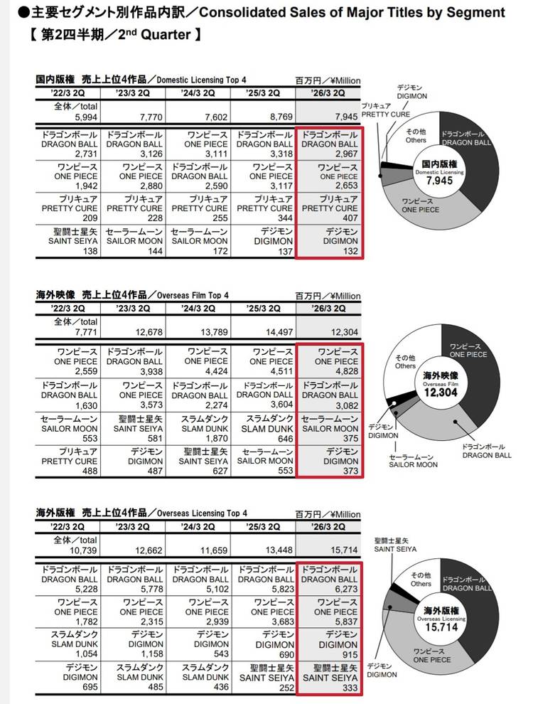 According to the new fiscal report, which covers April–September 2025, Dragon Ball brought in 12.3 billion yen. In the USD, this total comes out to nearly 80 million, so that isn’t too shabby. However, the total did not beat out One Piece with its 13.3 billion yen draw. The hit franchise earned over 86 million yen in Q2, leaving Luffy to triumph over Goku.