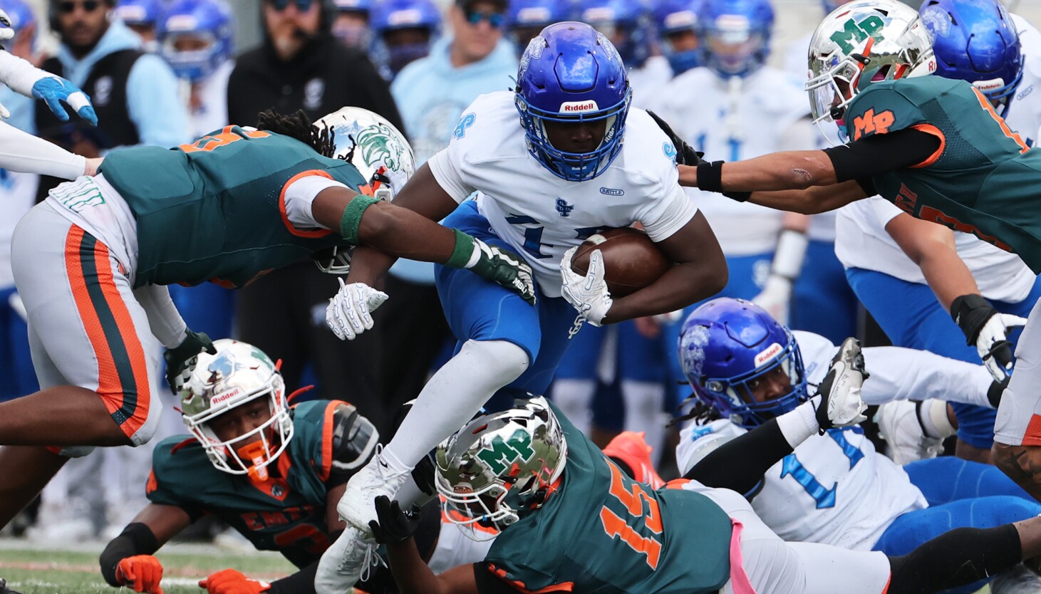 For Morgan Park, Smith finished 12-of-18 for 131 yards and two touchdowns, both to Illinois commit Nasir Rankin, with two interceptions. Travezz Jones had three catches for 53 yards and Rankin had three for 50. Reggie Gray Jr. added a TD run for the Mustangs.