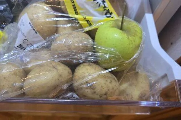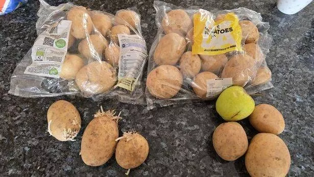 I dutifully purchased two standard 1KG bags of spuds from Asda, along with a pack of Golden Delicious apples. One bag had an apple popped in it and was then tucked away in the crisper drawer of the fridge. The other was stashed in a dark cupboard in one corner of the kitchen, sans apple.