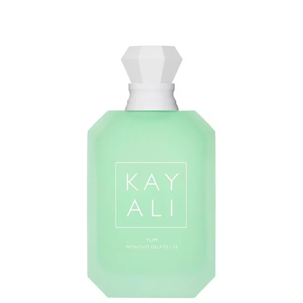 The Kayali scent is described as a “delicious explosion of irresistible and edible notes” including pistachio, whipped cream, roasted hazelnut, sweet rum, fluffy marshmallow and fizzy cotton candy. “A truly yummy fragrance that charms with an unforgettably intense, gourmand scent trail that will have you smelling good enough to eat!”