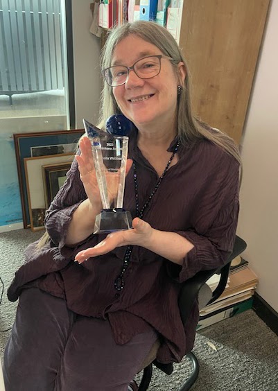 Photo by Sophie Rutter, taken last year when I received the Thinkerer award for immersive education: this is my blog so I decided to pick a more flattering picture of me 😉