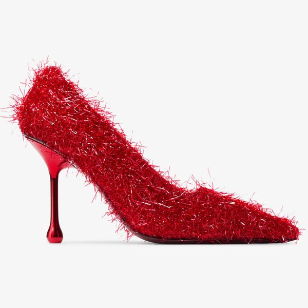 If Dorthy was a fashion girlie, these would be here special ruby-red slippers. For those who like a classic stiletto or just love the idea of wearing tinsel on your feet, you’re sure to make a statement in these festive red pumps.