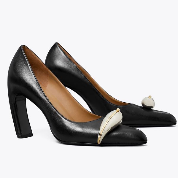 If you’re a fan of Tory Burch shoes, then you’re familiar with her best-selling pierced collection, featuring flats, mules, and now pumps. Designer with bold pumps features a curved heel along with the two-toned hardware at the soft-tip toe. The shoes also come in a brownish-red hue.