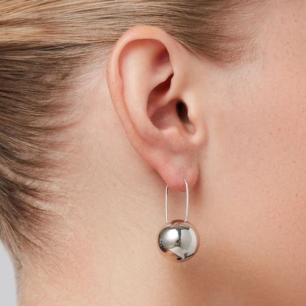 Reminiscent of your favorite metallic holiday-tree bulbs, these bold metal spheres are a modern take on the drop earring.