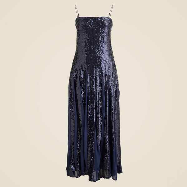 There’s nothing like a full-on sequin dress for holiday and cocktail events, especially one like this spaghetti-strap navy number from J.Crew’s recent designer collaboration with Christopher John Rogers.