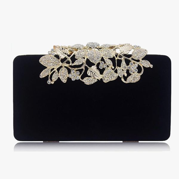 Do you really need to spend a ton of money on a special events bag? Not really. Amazon has plenty of affordable options like this ornate black-and-gold rhinestone clutch.