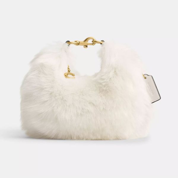 This is the season of faux-fur and fleece, so it only makes sense to have a fluffy fuzzy bag, too. With its detachable strap, this crescent-shaped shearling bag can be both a tiny top handle for your cocktail look or an everyday crossbody.