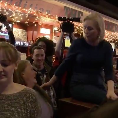 The 2020 election is well underway and everyone is running and that’s great, whatever, but we are here today to talk about this week’s most important non-candidate: mystery ranch woman. Who is the mystery ranch woman, you ask? She’s the breakout star of a video from a Kirsten Gillibrand campaign stop in Iowa. Gillibrand is talking to a bar full of people on Monday about something important, I’m sure, but the true celebrity is mystery ranch woman (MRW) who, when caught trying to shimmy past Gillibrand and her crowd, says only that she’s “just trying to get some ranch” and moves on her way.
