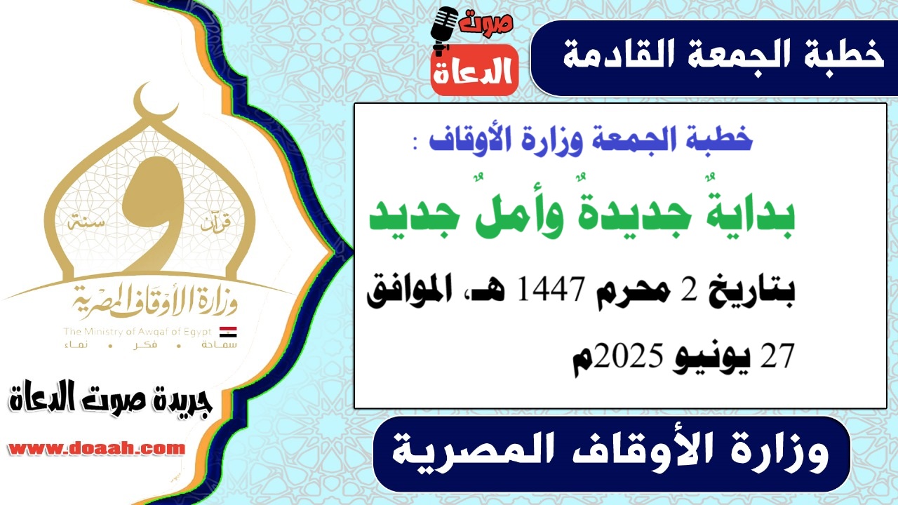 The Ministry of Awqaf has defined the topic of the next Friday sermon entitled: “A new beginning and a new hope.” The Ministry has indicated that the desired goal of this sermon and intended to communicate to the public is: educating the public about the importance of renewing hope with the reception of the new Hijri year, knowing that the second sermon deals with a great warning of addiction damage, and hope at a new, bright start with strength and wellness.