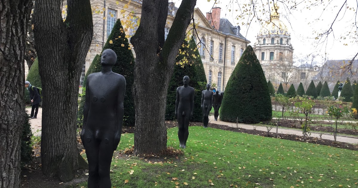 Photo by Sheila Webber: Gormley sculpture at Rodin museum, November 2023