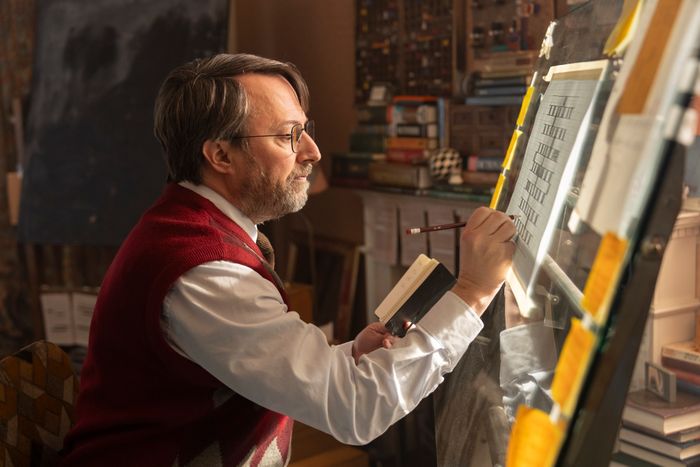 As a puzzle expert, John is wildly adept at solving the sorts of whodunits that happen on a cozy British murder show like this: stories light on violence but heavy on wit and ambience in which all the suspects are bunched together in a manor house or office building. And Mitchell is perfectly cast in a role seemingly built to suit his usual fussy, pedantic schtick. In a conversation over Zoom about his work, the show, the state of the world, and the economics of British television, Mitchell did insist on a key difference between himself and his character. “I’m fundamentally an extrovert, or I wouldn’t have chosen a career that involves appearing in front of people as my job,” he said. “But obviously, I’m not kidding myself that it’s a transformative performance.”